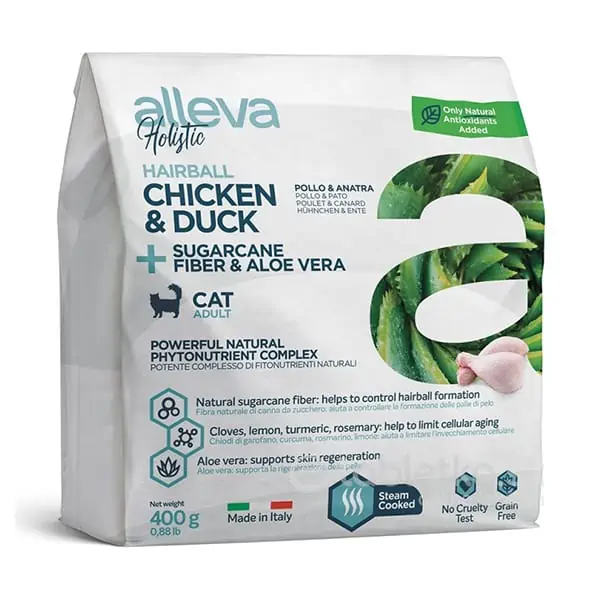 Alleva HOLISTIC cat hairball 0,4kg5,13 € Na sklade Kompletné krmivo pre dospelé mačky s dlhou srsťou. ...