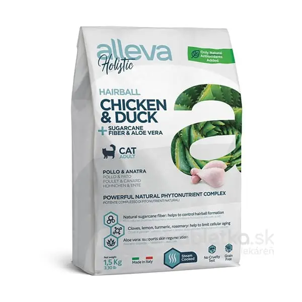Alleva HOLISTIC cat hairball 1,5kg14,55 € Na sklade Kompletné krmivo pre dospelé mačky s dlhou srsťou. ...