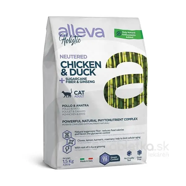 Alleva HOLISTIC cat neutered 1,5kg14,55 € Na sklade Kompletné krmivo pre dospelé kastrované mačky. ...