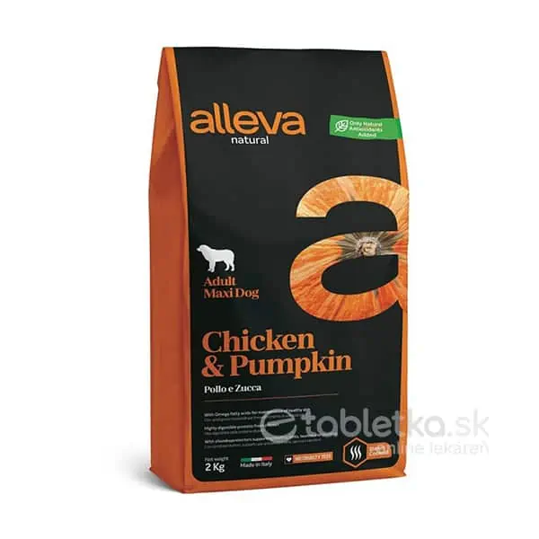 Alleva NATURAL dog adult maxi chicken & pumpkin 2kg16,24 € Na sklade Kompletné krmivo pre dospelé psy veľkých plemien. ...