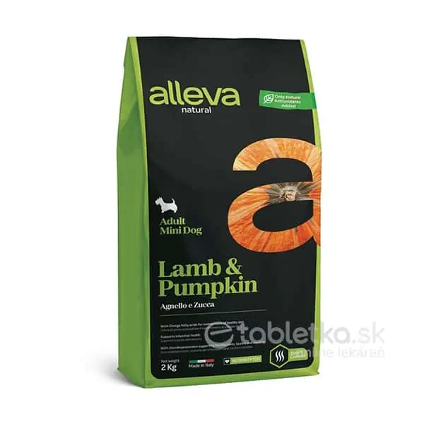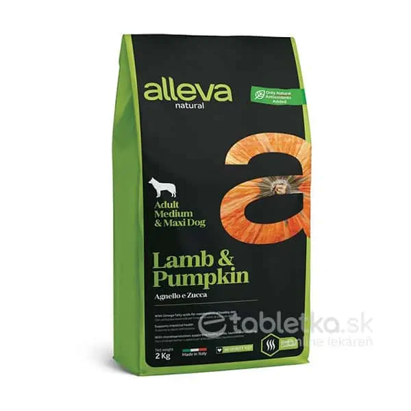 Alleva NATURAL dog adult medium & maxi lamb & pumpkin 2kg17,34 € Na sklade Kompletné krmivo pre dospelé psy stredne veľkých a veľkých plemien. ...