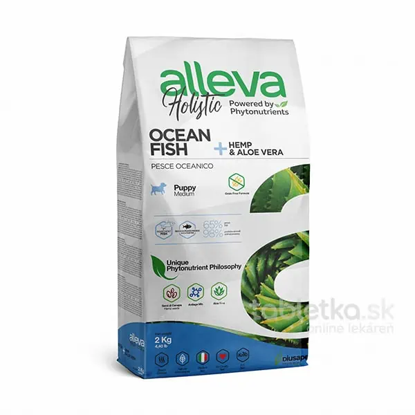 Alleva HOLISTIC dog puppy & junior medium ocean fish 2kg23,54 € Na sklade Kompletné krmivo pre šteňatá stredne veľkých plemien a pre gravidné a laktujúce suky. ...
