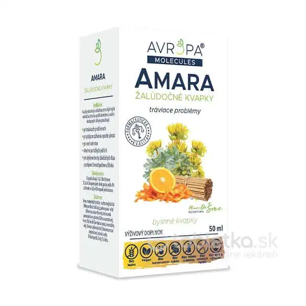 Amara žalúdočné bylinné kvapky na tráviace problémy.