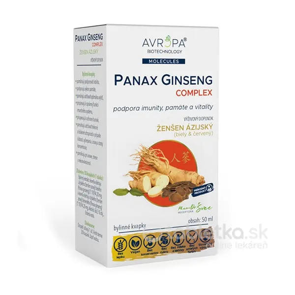 AVROPA Panax Ginseng Complex bylinné kvapky na podporu imunity, pamäte a vitality.