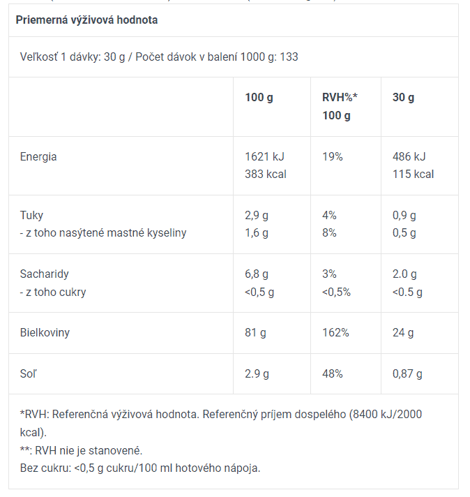 *V prípade práškových doplnkov tvrdenie platí pre nápoj pripravený s vodou.