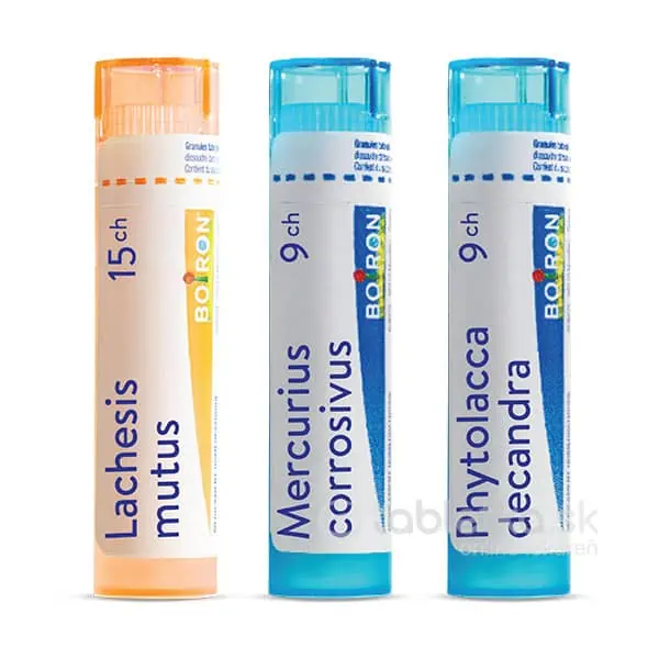 Lachesis mutus 15 CH, Mercurius corrosivus 9 CH, Phytolacca decandra 9 CH sú homeopatické lieky. O správnom spôsobe užívania a dávkovania sa poraďte so svojim lekárom alebo lekárnikom. Ak príznaky ochorenia trvajú dlhšie ako tri dni alebo sa zhoršujú, je nutné vyhľadať lekára.