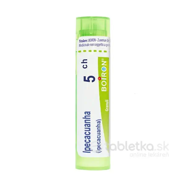 SPRIEVODNÉ ZNAKY: Všetky patologické prejavy vyžadujúce liek Ipecacuanha (dýchacie, zažívacie, krvácavé) sú sprevádzané veľkou nauzeou s čistým alebo mierne povlečeným jazykom a zvýšeným slinením.