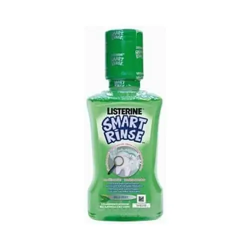 Ústna voda Listerine Smart Rinse Mild Mint neobsahuje alkohol. Zato obsahuje fluorid, ktorý posilňuje zuby a znižuje riziko zubného kazu až o 40%* a to 3 kľúčovými účinkami. Antibakteriálnym (antiseptickým) pôsobením, väzbou fluoridových iónov na zubnú sklovinu a tvorbou tvrdšieho tkaniva a jeho remineralizáciou. Pokiaľ ide o jej vôňu, deti majú na výber dve príchute – neštipľavú jemnú mätovú, alebo ovocnú jahodovo-malinovú. Nájdenie správnej príchute a pochvala, keď v umývadle neostane žiadny zafarbený fliačik, môže deti motivovať k tým najlepším čistiacim výkonom.