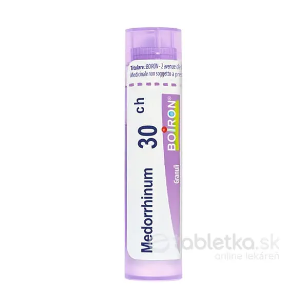 Gluteálny erytém dojčaťa: Medorrhinum sa podáva systematicky s Calcarea carbonica a lieči prakticky štandardne tento chorobný stav, najmä keď dieťa spí v genupektorálnej polohe. Predpisujú sa postupne tri dávky: 9 CH, 15 CH, 30 CH striedavo s rovnakými dávkami Calcarea carbonica.