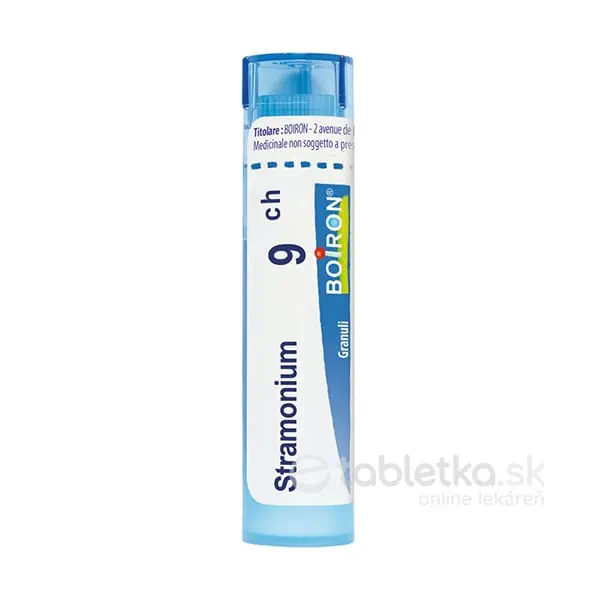 AKÚTNE HORÚČKOVÉ STAVY: V pediatrii sa predpisuje častejšie Stramonium, ako rutinne odporúčaná Belladonna. V zásade ich rozlišuje charakter horúčky a intenzita symptómov: Belladonna má oscilujúcu horúčku s horúčkovým blúznením, Stramonium má vysokú horúčku a oveľa intenzívnejšie a prudšie symptómy – nočné desy, ktoré sprevádzajú horúčku a prebudenie s nadskočením.