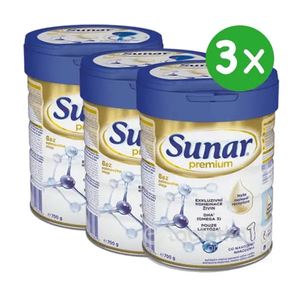 Dojčenie je pre novorodencov a dojčatá najlepší spôsob výživy. Skôr, než sa rozhodnete používať náhradnú mliečnu výživu, alebo prejsť na inú stravu, poraďte sa s detským lekárom. Sunar Premium 1 ako náhradu za dojčenie po posúdení individuálneho rastu a vývoja dieťaťa používajte a iba na radu nezávislých osôb kvalifikovaných v lekárstve, výžive alebo farmácii, alebo iných odborníkov zodpovedných za starostlivosť o matku a dieťa.