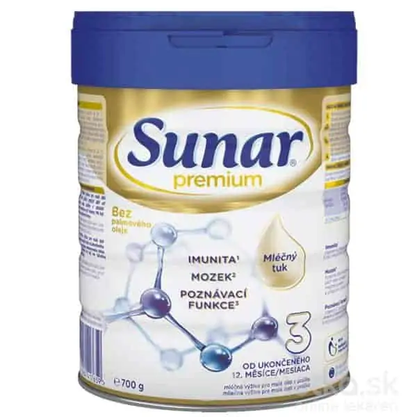 Dojčenie je pre novorodencov, dojčatá i batoľatá najlepší spôsob výživy. Skôr, než sa rozhodnete používať náhradnú mliečnu výživu, alebo prejsť na inú stravu, poraďte sa s detským lekárom. Sunar Premium 3 ako náhradu za dojčenie po posúdení individuálneho rastu a vývoja dieťaťa používajte a iba na radu nezávislých osôb kvalifikovaných v lekárstve, výžive alebo farmácii, alebo iných odborníkov zodpovedných za starostlivosť o matku a dieťa.