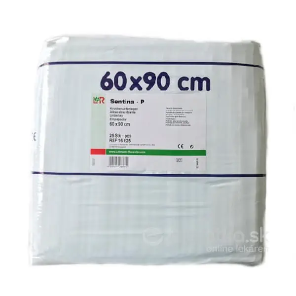 Sentina P podložka pod chorých 60x90cm 25ks22,50 € Vypredané Hygienické, savé podložky pod pacientov ako ochrana na posteľ/kreslo, počas výmeny inkontinenčnej pomôcky a liečebných p ...